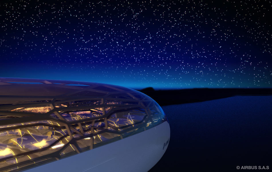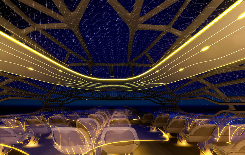 Ini akan memberikan kekuatan di mana diperlukan, dan juga memungkinkan untuk dinding membran dari kabin \ pintar ', yang mengendalikan suhu udara dan dapat transparan untuk memberikan penumpang yang, pemandangan terbuka panorama.